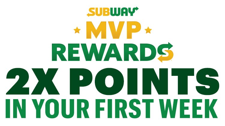 Valid at participating U.S. restaurants. New members only. Receive 2x points on qualifying purchases made using your Subway® MVP Rewards account during first week of membership when you join between 1/24/24 and 2/27/24. Not valid on third party delivery orders, ezCater catering orders, or purchases of gift cards. Points may take up to 72 hours to appear in account.
