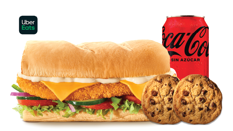 1 Sub pollo apanado 15 cm + 1 bebida + 2 galletas. Exclusiva por UberEats.